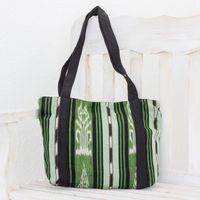 Green and Black Stripe Handwoven Cotton Lined Tote 13 Inch 'Glorious Stripes' Item ID: 2671778672