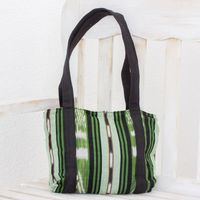 Green and Black Stripe Handwoven Shoulder Bag 11 Inch 'Glorious Stripes' Item ID: 2671779225