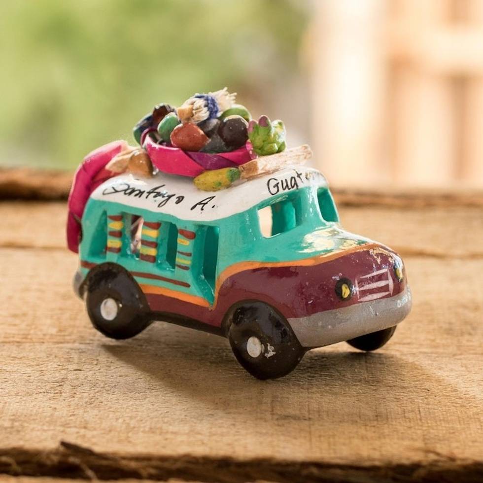 Green and Brown Ceramic Mini Bus Decoration from Guatemala 'Brown and Turquoise Old Tim...' Item ID: 2671772558