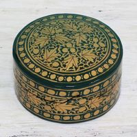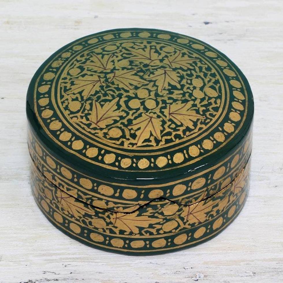 Green and Gold Papier Mache Decorative Box from India 'Alluring Viridescence' Item ID: 2676663826