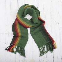 Green and Multicolored 100 Alpaca Wrap Scarf from Peru 'Moss Rainbow' Item ID: 2676641746