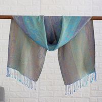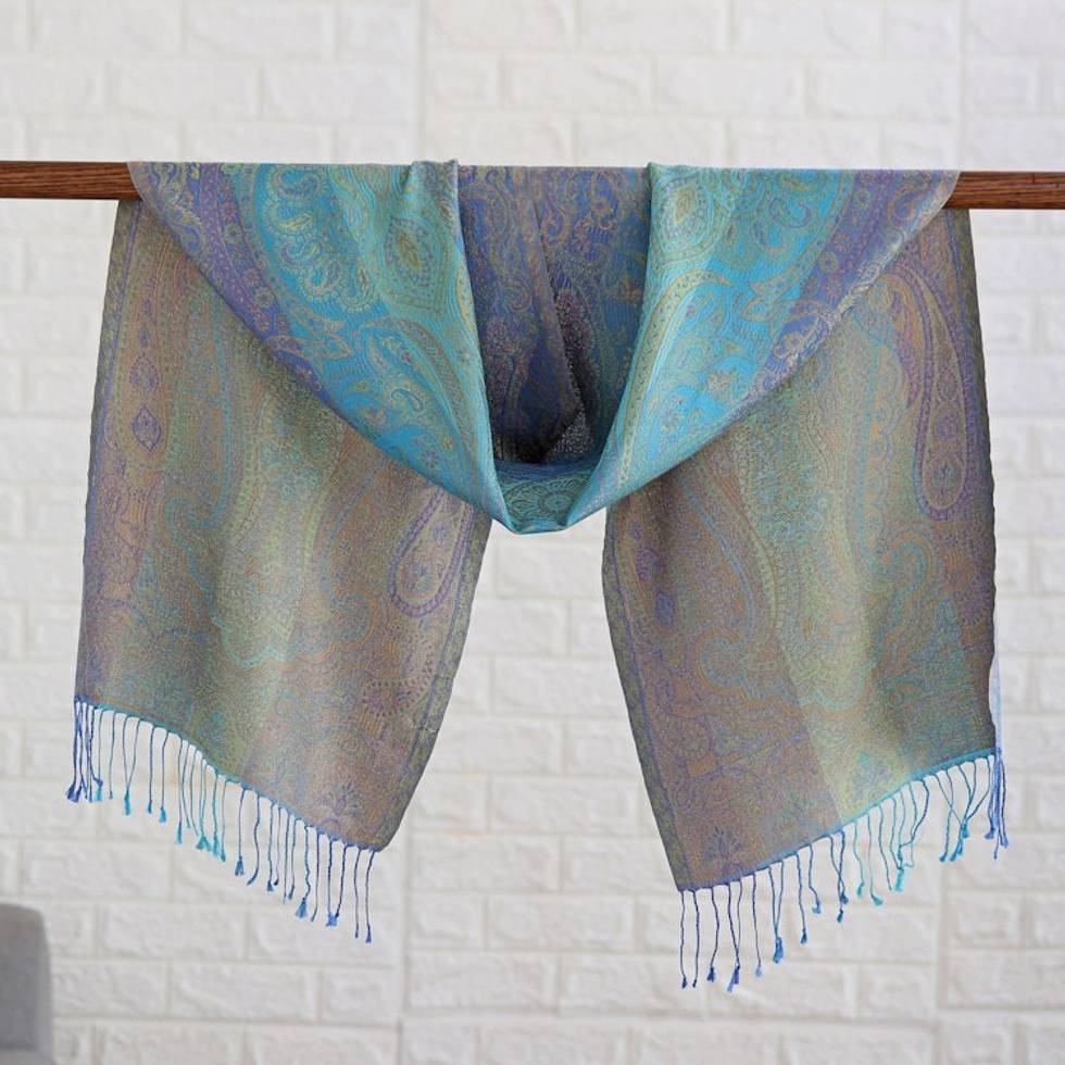 Green and Purple Silk Scarf with Paisley and Classic Motifs 'Purple Heaven' Item ID: 2669924340
