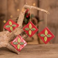 Green and Red Ceramic Mistletoe Ornaments Set of 4 'Mistletoe' Item ID: 2671776723