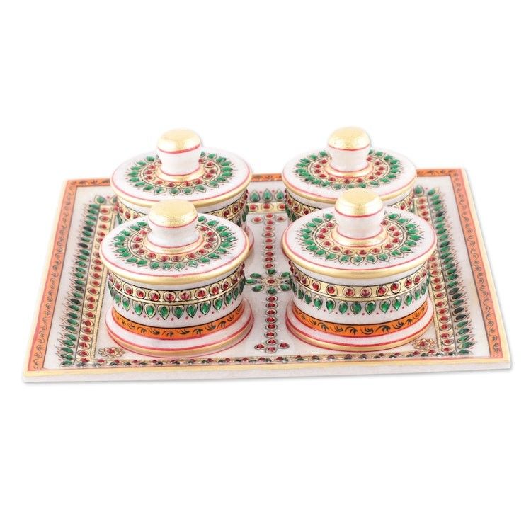 Green and Red Marble Tray and Covered Bowls 5 Pieces 'Gathering at the Palace' Item ID: 2671781966