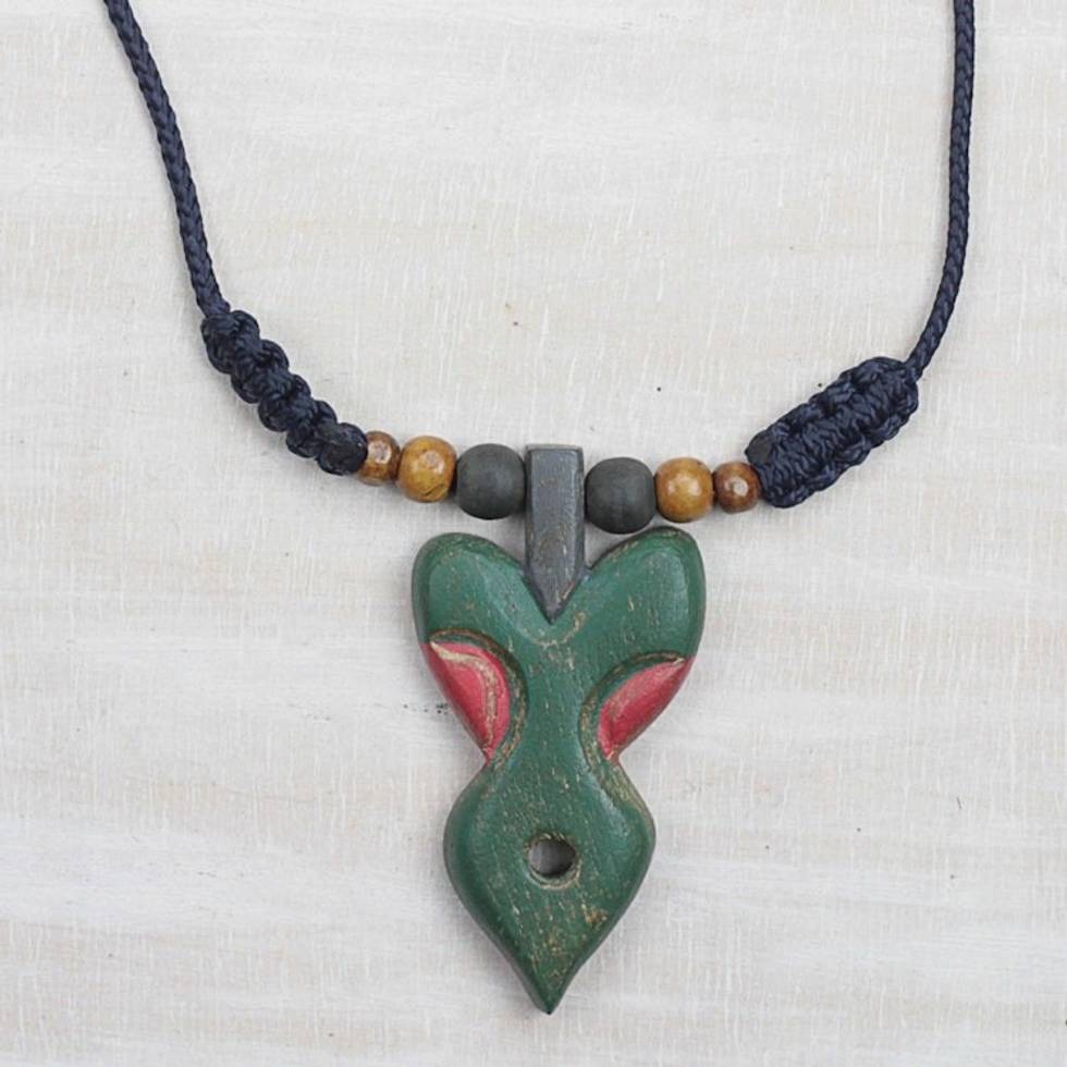 Green and Red Wood Pendant Necklace on Adjustable Cord 'Akuma Mu Nsem' Item ID: 2671803741