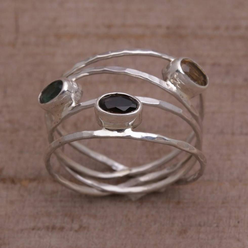 Green and Smoky Quartz and Citrine Ring from Bali 'Bold Majesty' Item ID: 2671733957