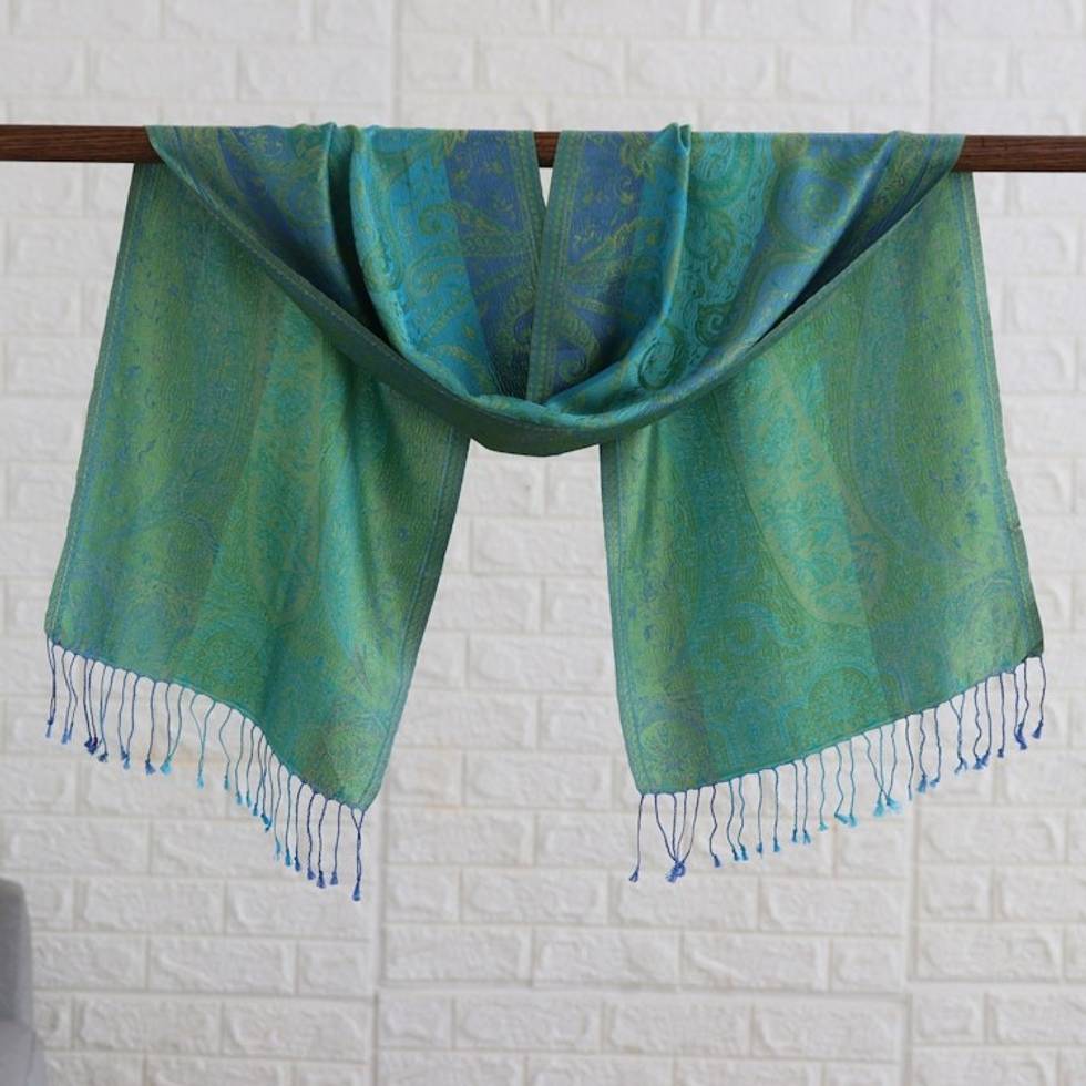 Green and Turquoise Silk Scarf with Leafy and Classic Motifs 'Green Heaven' Item ID: 2669924959