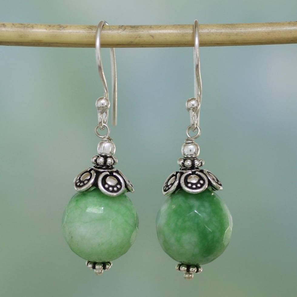 Green Aventurine and Sterling Silver Dangle Earrings 'Green Delight' Item ID: 2669924081