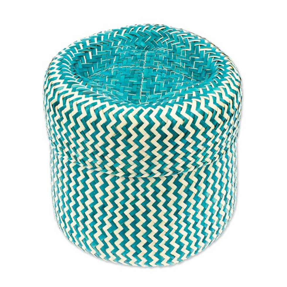 Green Basket with Lid Hand-Woven from Palm Fiber in Mexico 'Tiger in Green' Item ID: 2671640122