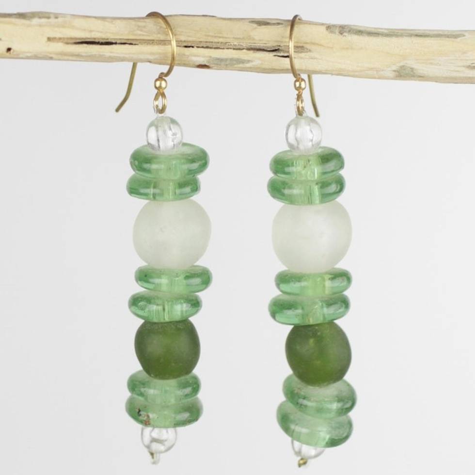 Green Beaded Earrings from Africa Fair Trade Jewelry 'Dziedzorm' Item ID: 2671807067