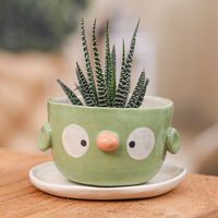 Green Bird-Shaped Ceramic Mini Flower Pot and Saucer Small 'Bird Spring' Item ID: 2671796683