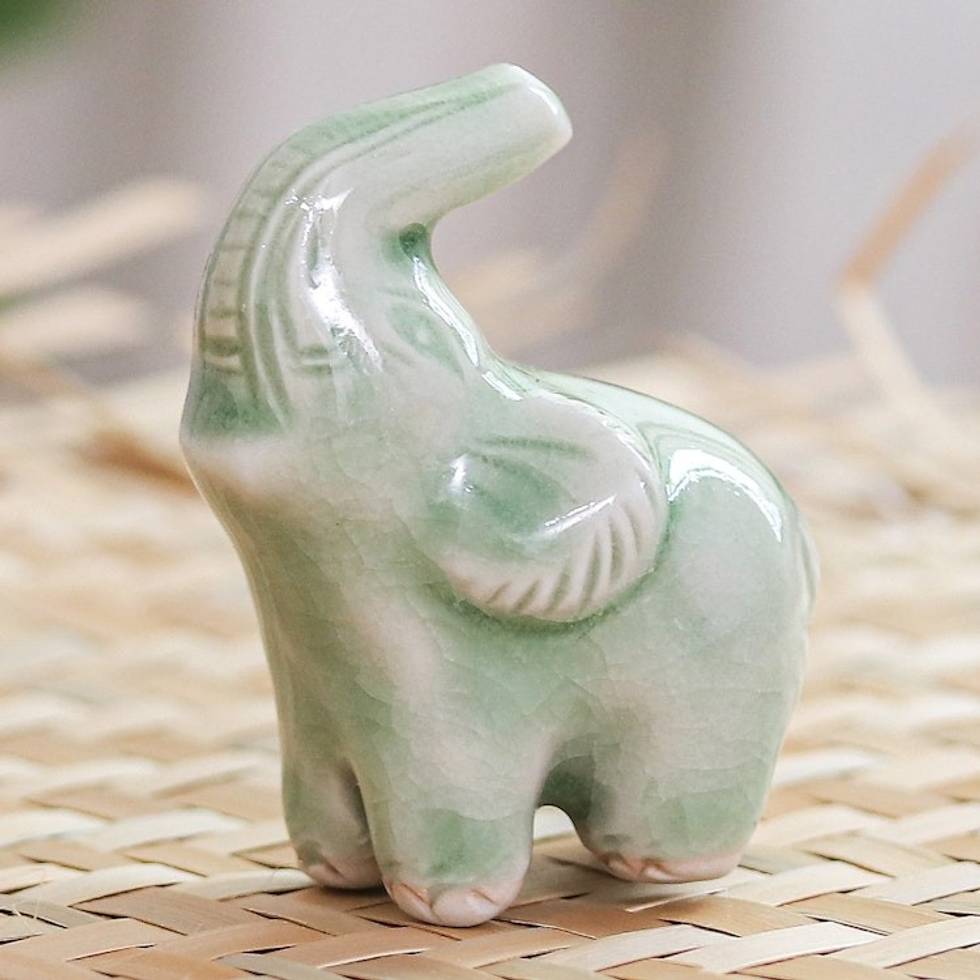 Green Celadon Ceramic Figurine 'Happy Elephant in Green' Item ID: 2669894244