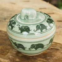 Green Celadon Ceramic Jewelry Box with Elephant Motif 'Elephants on Parade' Item ID: 2676648492