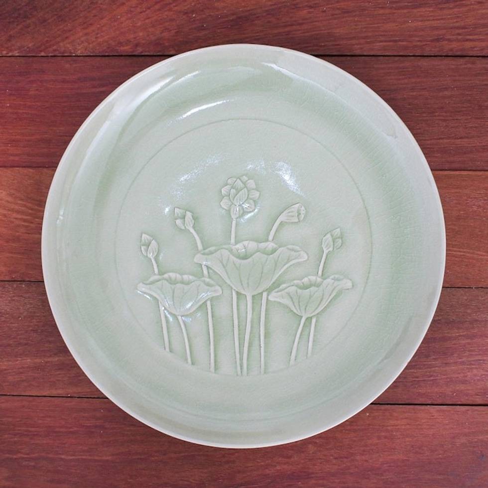 Green Celadon Ceramic Lotus Flower Dinner Plate 'Flavorful' Item ID: 2671800250