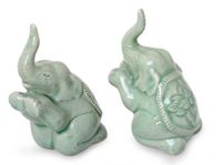 Green Celadon Ceramic Sculptures Pair 'Elephant Prayer' Item ID: 2669897441