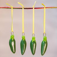 Green Ceramic Serrano Pepper Ornaments Set of 4 'Serrano Peppers in Green' Item ID: 2669931988