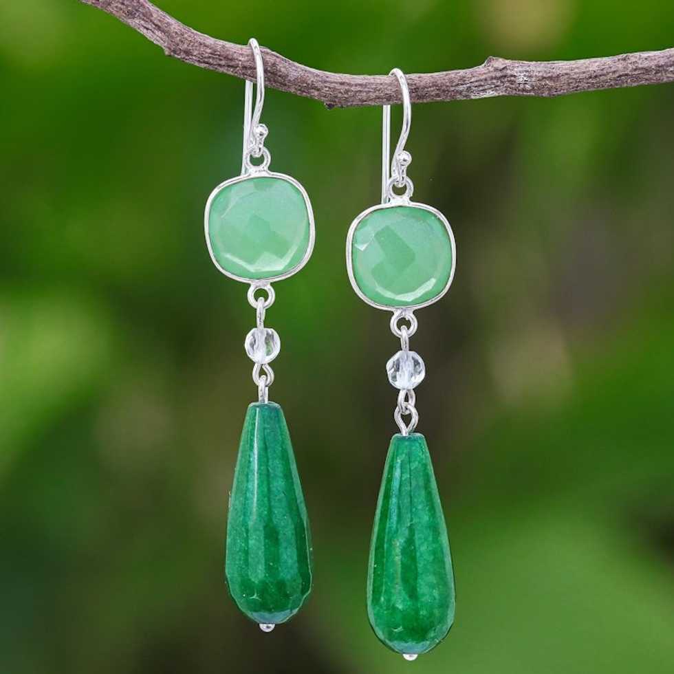 Green Chalcedony and Quartz Dangle Earrings 'Easy Being Green' Item ID: 2669927417