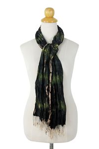 Green Crinkled Silk Scarf with Tie Dye Patterns 'Forest Mystique' Item ID: 2671802212
