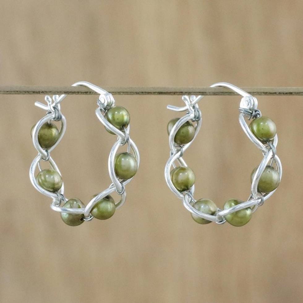 Green Cultured Pearl and 925 Silver Earrings from Thailand 'Cloud Twist in Green' Item ID: 2669926072