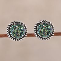 Green Drusy Quartz Stud Earrings from India 'Round Green' Item ID: 2669944151
