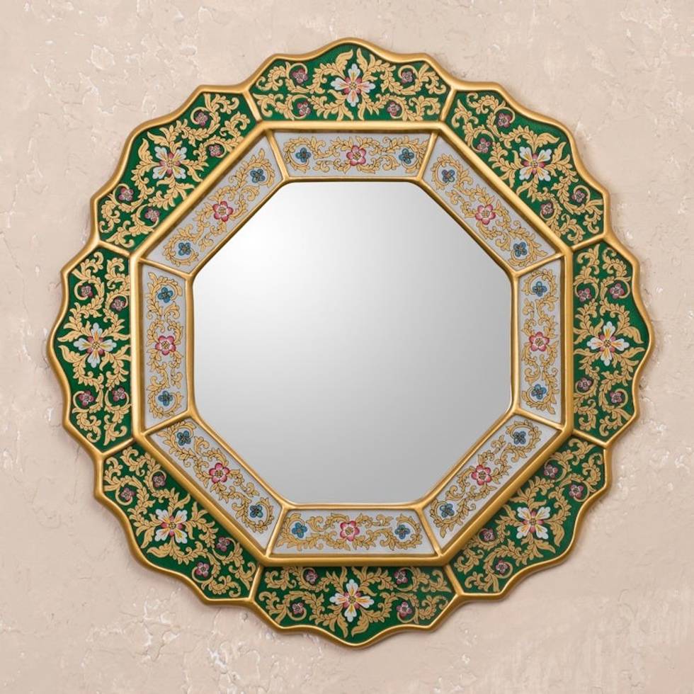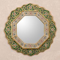 Green Floral Fair Trade Reverse Painted Glass Wall Mirror 'Green Star' Item ID: 2671820061