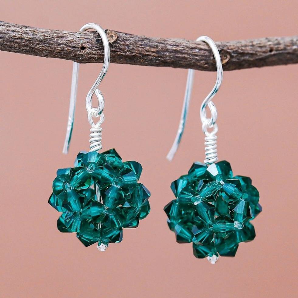 Green Glass Beaded Earrings from Thailand 'Emerald Sparkle' Item ID: 2671800288