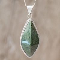 Green Jade and Sterling Silver Pendant Necklace 'Refined Ridge' Item ID: 2671627092