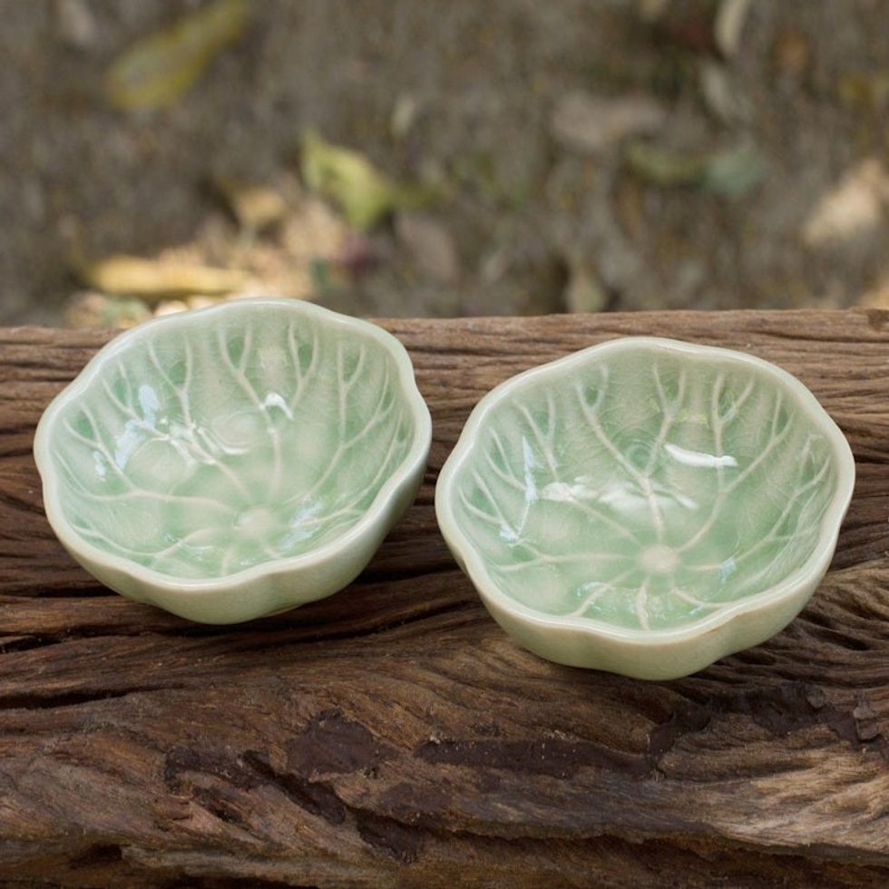 Green Leaf Thai Celadon Canape Dish Pair 'Lotus Leaf' Item ID: 2669930914