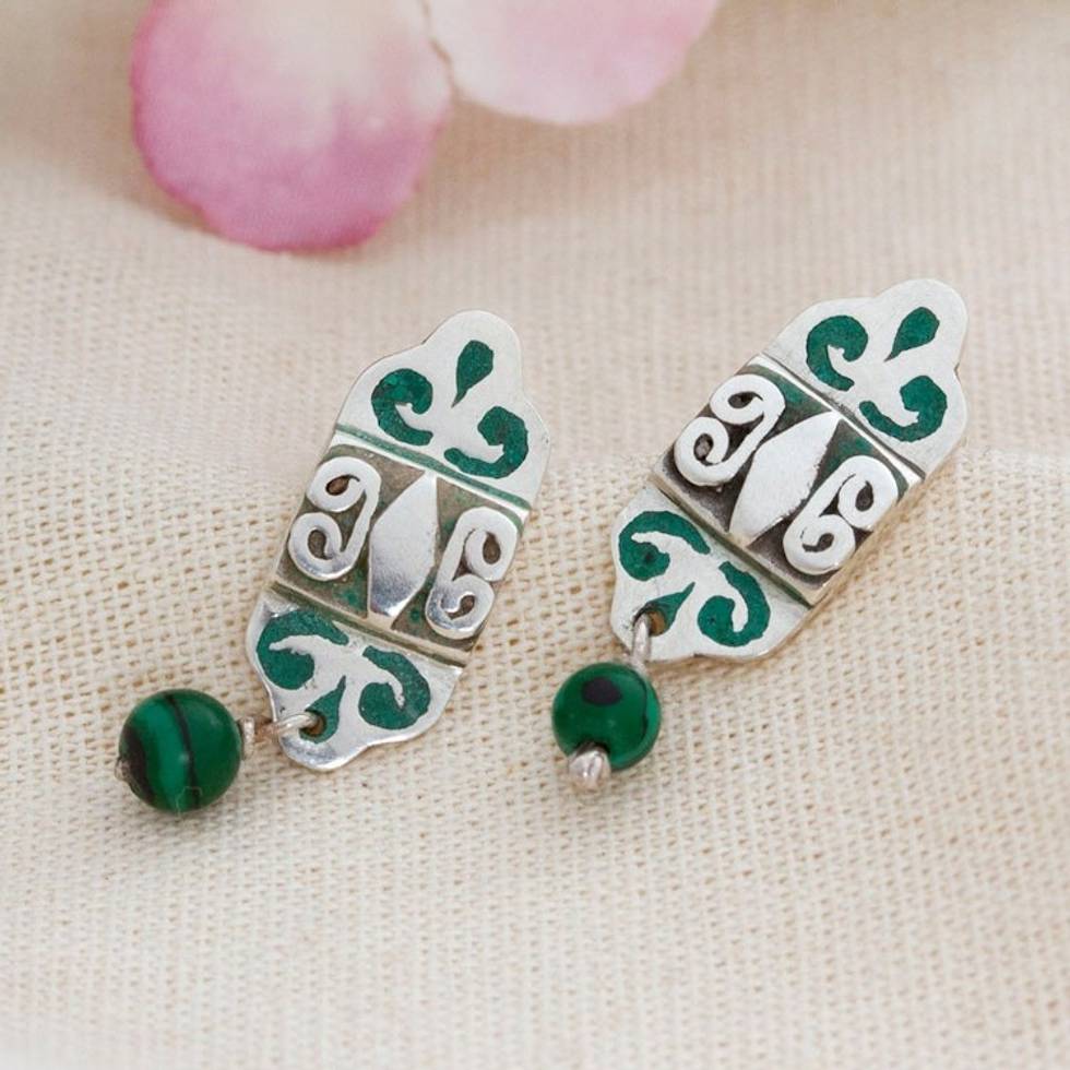 Green Natural Malachite and Sterling Silver Dangle Earrings 'Green of Grandeur' Item ID: 2671798690