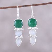 Green Onyx and Rainbow Moonstone Dangle Earrings from India 'Glittering Muse' Item ID: 2671620055