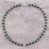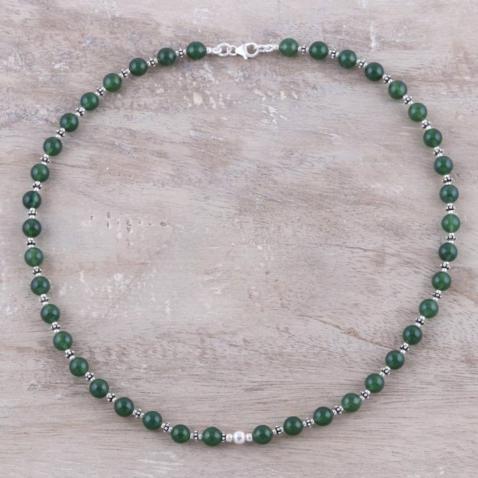 Green Onyx and Sterling Silver Beaded Necklace from India 'Beaded Beauty' Item ID: 2671792423