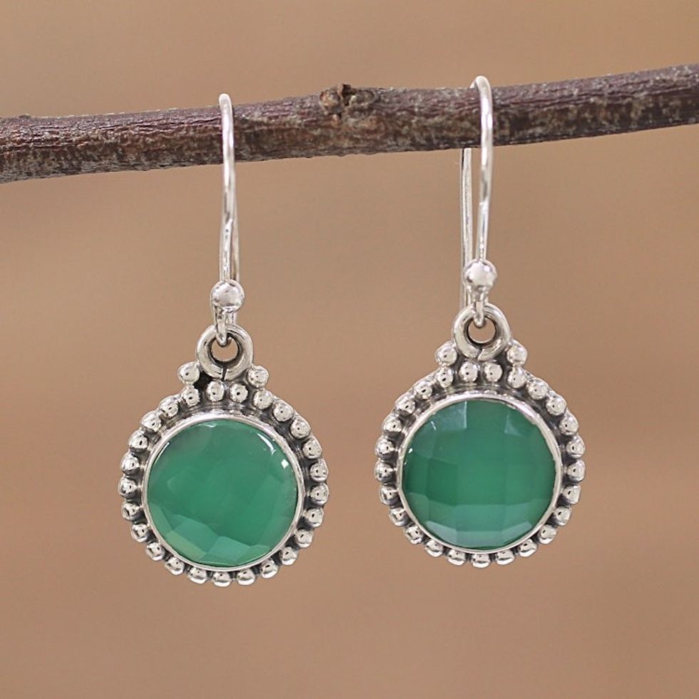 Green Onyx and Sterling Silver Dangle Earrings from India 'Green Passion' Item ID: 2669925643