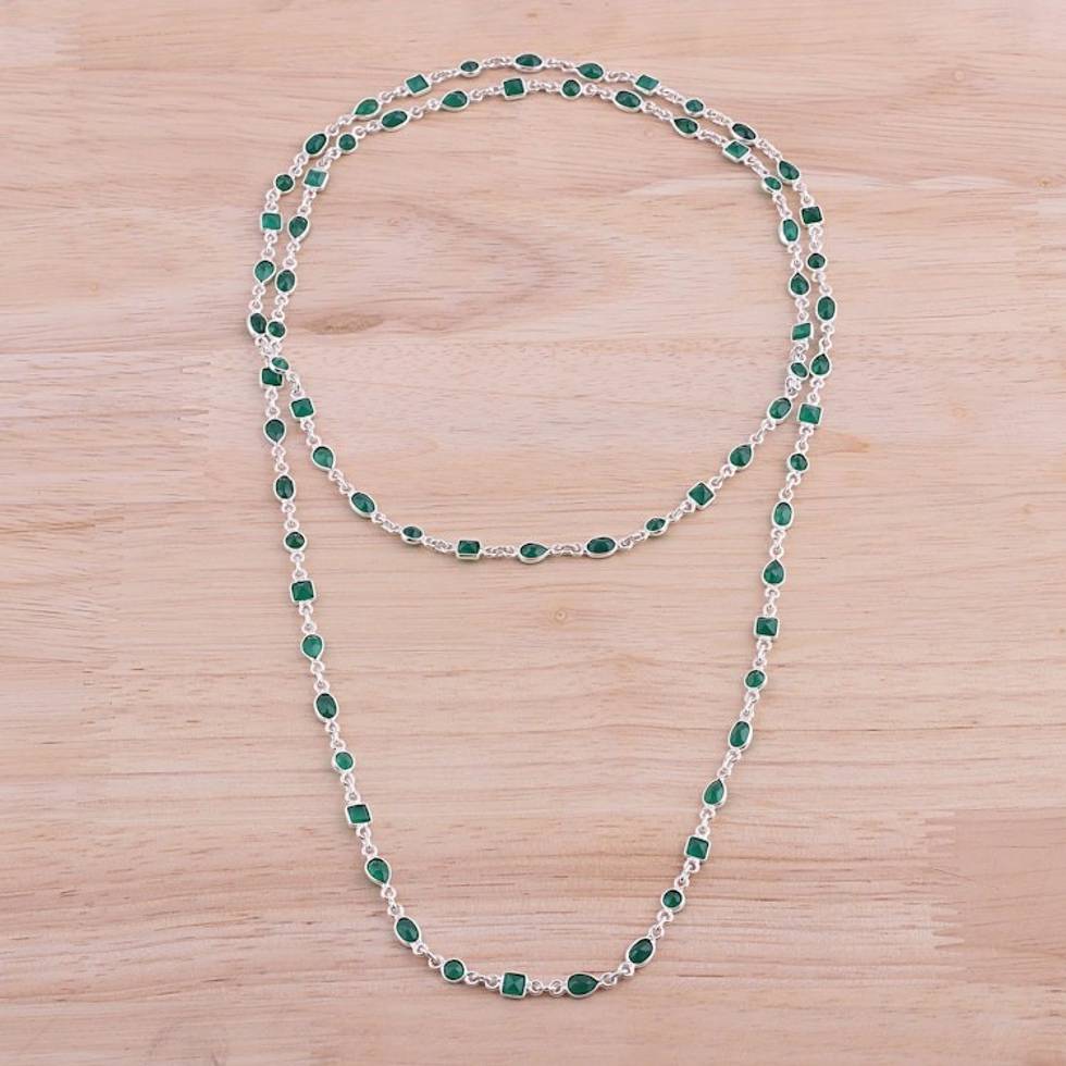 Green Onyx and Sterling Silver Link Necklace from India 'Delightful Gleam' Item ID: 2669943790