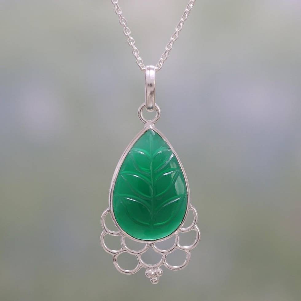 Green Onyx and Sterling Silver Pendant Necklace from India 'Verdant Magnificence' Item ID: 2671791126