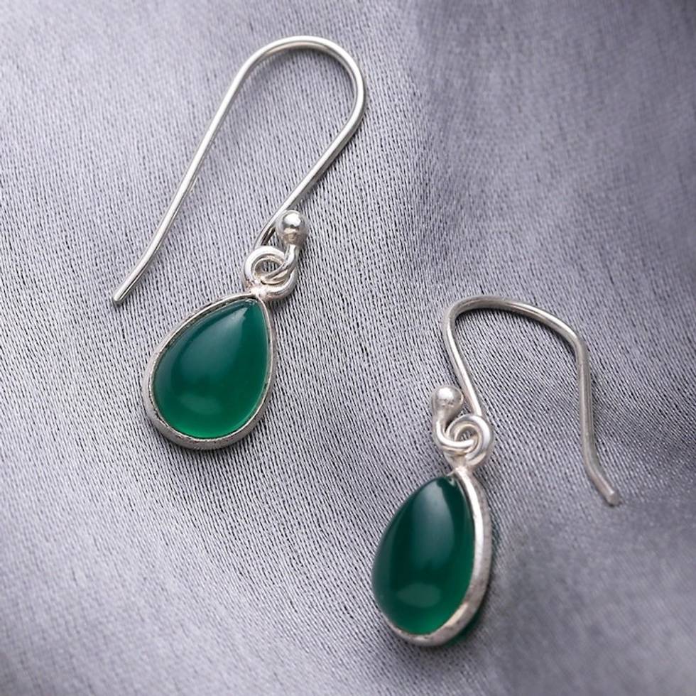 Green Onyx and Sterling Silver Teardrop Dangle Earrings 'Gentle Tear in Green' Item ID: 2671621477