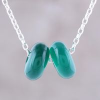 Green Onyx Double Disc and Sterling Silver Pendant Necklace 'Delightful Duet in Green' Item ID: 2671792119