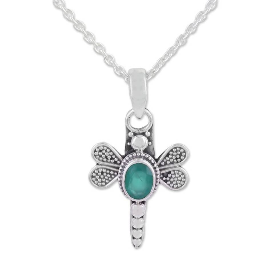 Green Onyx Dragonfly Pendant Necklace from India 'Fluttering Dragonfly' Item ID: 2671790996