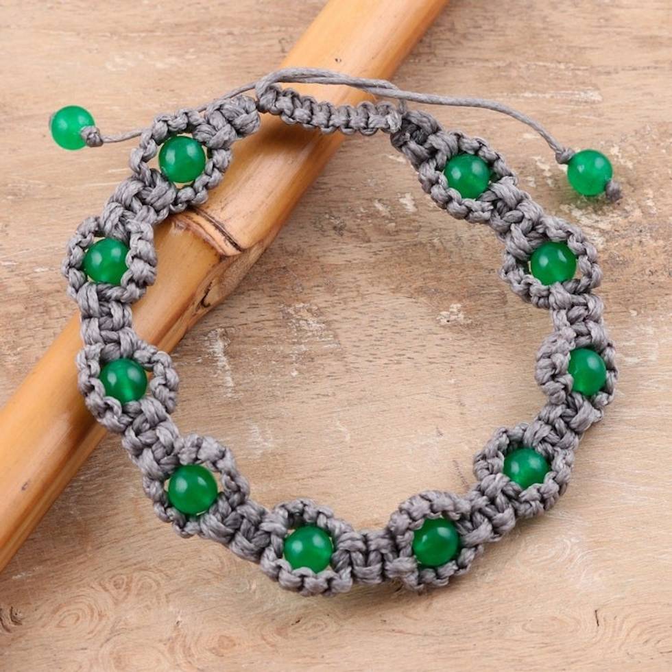 Green Onyx Macrame Hand-Knotted Bracelet from India 'Green Macrame Halo' Item ID: 2671789431