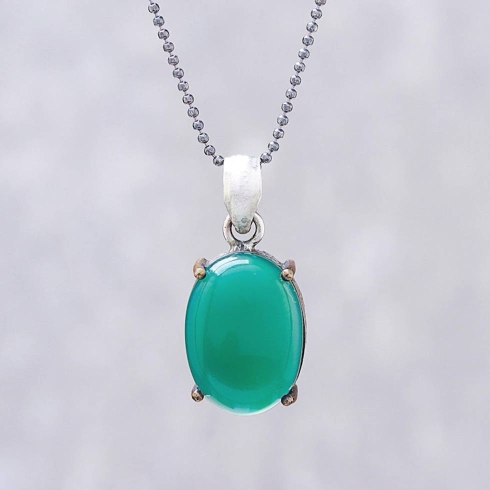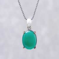 Green Onyx Oval and Sterling Silver Pendant Necklace 'Shamrock Pool' Item ID: 2671799085