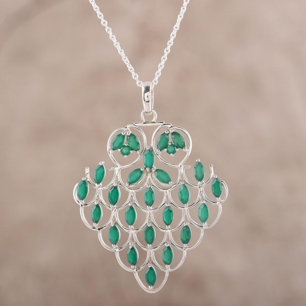 Green Onyx Pendant Necklace Crafted in India 'Love Sonnet' Item ID: 2671792867
