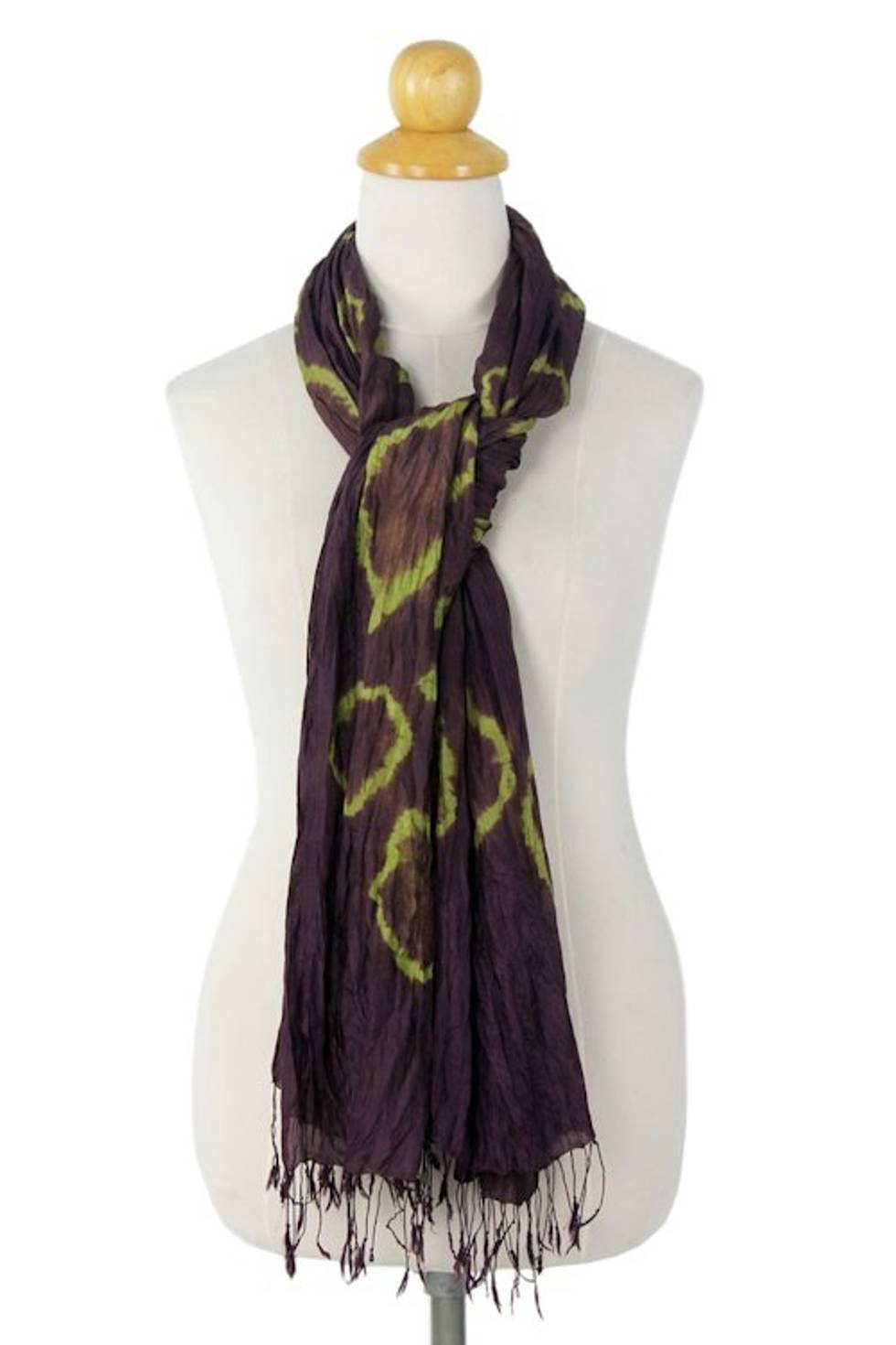 Green Purple Tie-dye Silk Scarf Crafted by Hand in Thailand 'Aubergine Dance' Item ID: 2671802404