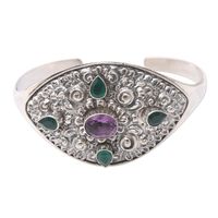Green Quartz and Amethyst Cuff Bracelet from Bali 'Elephant Cave in Forest' Item ID: 2671746786