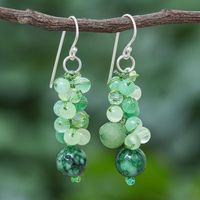 Green Quartz and Glass Bead Dangle Earrings 'Bubble Tea in Green' Item ID: 2671641259