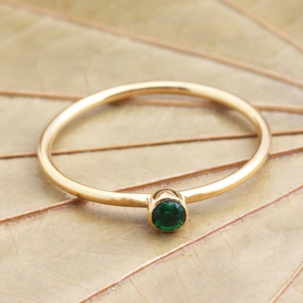Green Quartz Gold Plated Solitaire Ring 'Subtly Sweet' Item ID: 2670122264