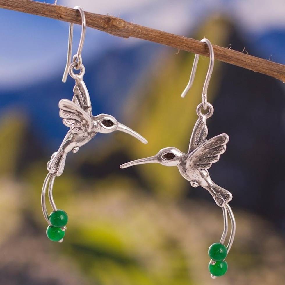 Green Quartz Hummingbird Dangle Earrings from Peru 'Hummingbird Green' Item ID: 2671690905