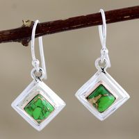 Green Sterling Silver Dangle Earrings 'Small Star in Green' Item ID: 2671622677