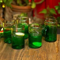 Green-Tinged Recycled Glass Tumblers from Mexico Set of 6 'Emerald Fade' Item ID: 2671638924