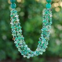 Green-Toned Chalcedony and Glass Beaded Strand Necklace 'Thoughtful Jewels' Item ID: 2671798150