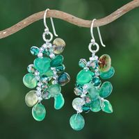 Green-Toned Chalcedony and Glass Beaded Waterfall Earrings 'Thoughtful Jewels' Item ID: 2671646660