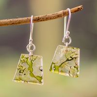 Green-Toned Geometric Recycled CD Dangle Earrings 'Forest Reflections' Item ID: 2671769288